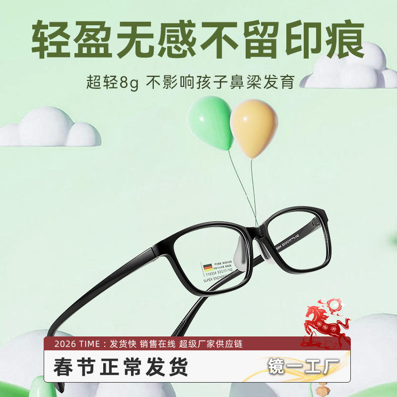 เดนยางเด็ก TR90 อัลตร้าไลท์กรอบแว่นตาทรงสี่เหลี่ยมกรอบเต็มสีดำขอบแว่นตาสายตาสั้นสำหรับนักเรียน 18304