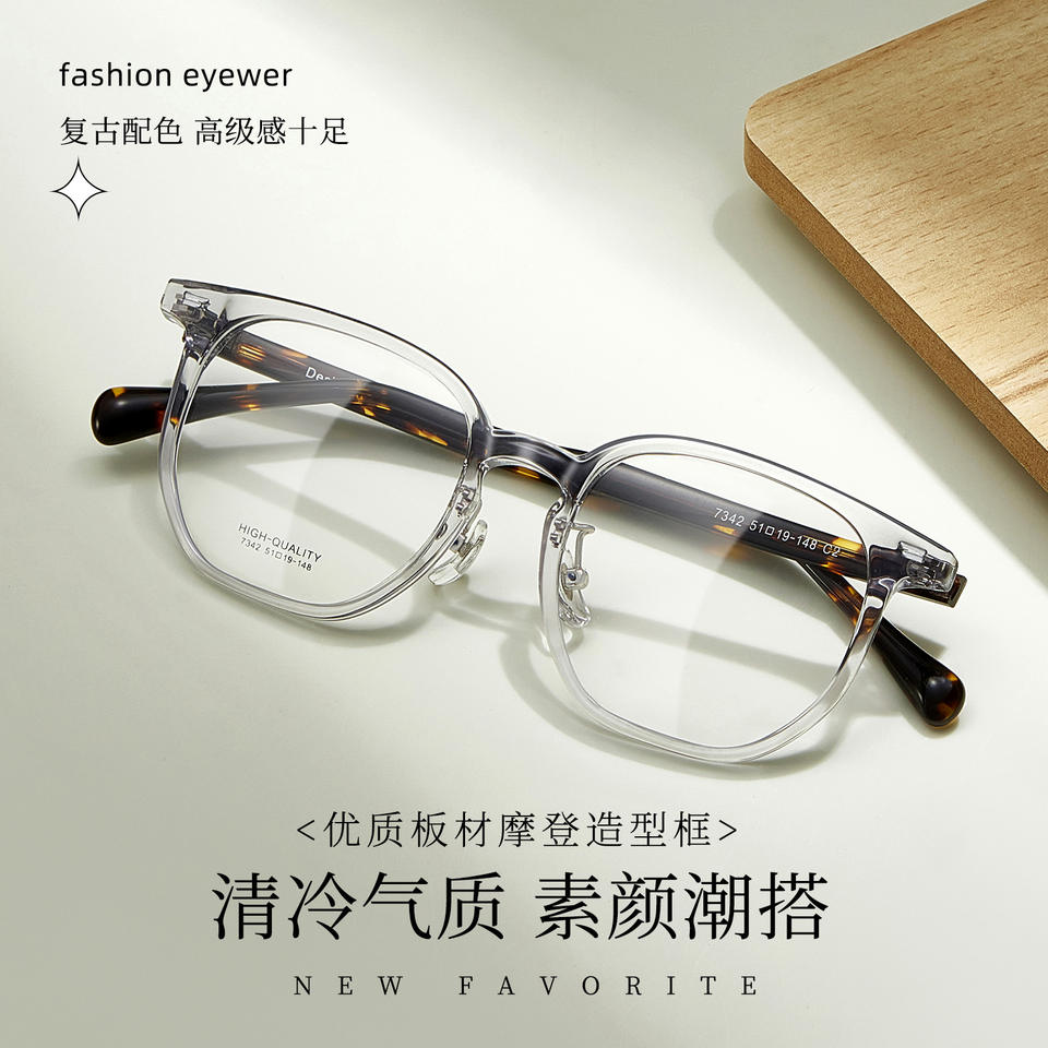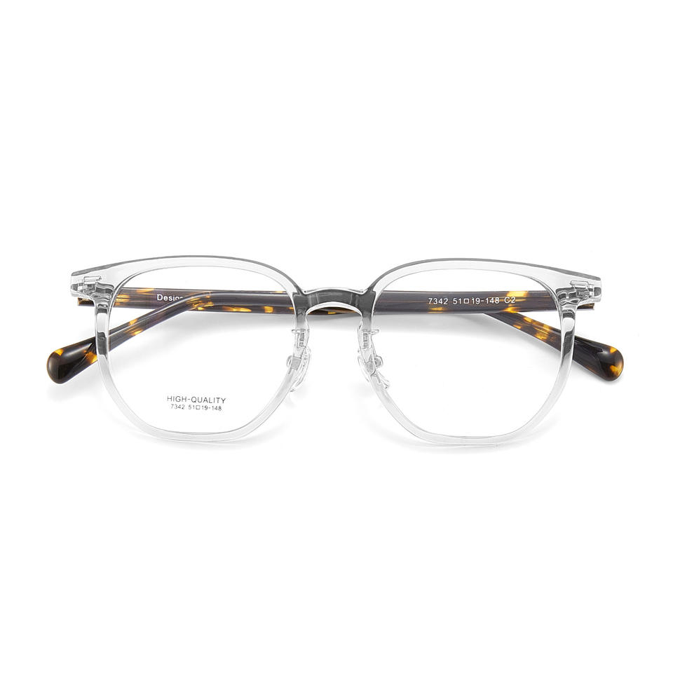 กรอบแว่นตาอะซิเตทคุณภาพสูง Danyang ทรงสี่เหลี่ยมเต็มกรอบ เลนส์เรซิ่นใส รุ่น Unisex 7342