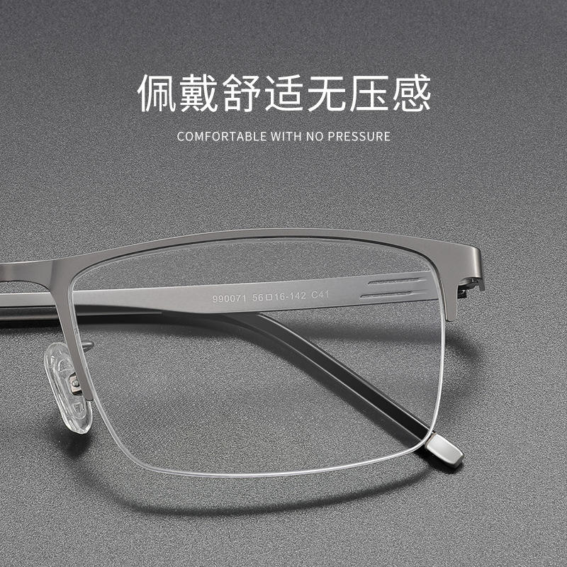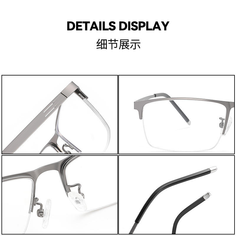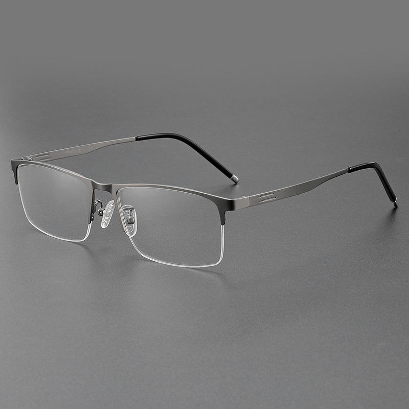 แว่นตาโลหะผสมทรงสี่เหลี่ยมครึ่งกรอบ Danyang Men รุ่น 990071 เลนส์พลาสติกกันลื่น สไตล์ลำลองสำหรับธุรกิจ