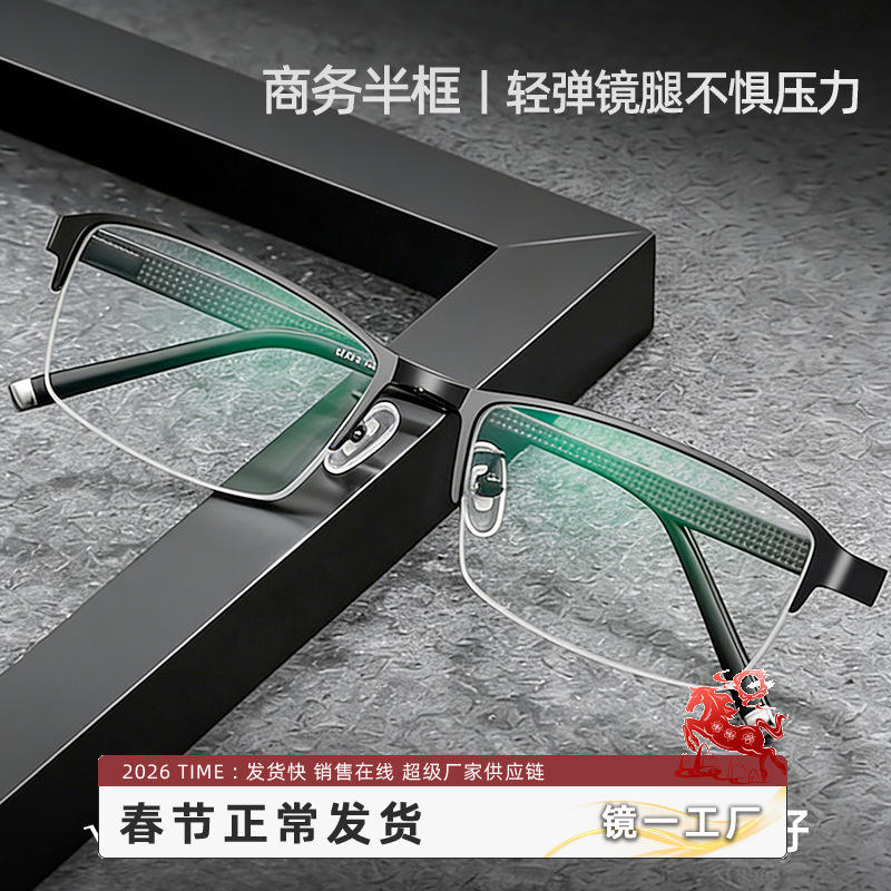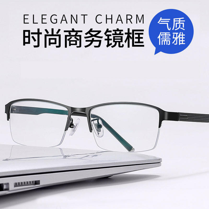 กรอบแว่นตาผู้ชายแบบครึ่งกรอบ รุ่น 3095 ยี่ห้อ Danyang วัสดุอัลลอยด์ ขนาดกลาง เลนส์ PC สไตล์ธุรกิจ