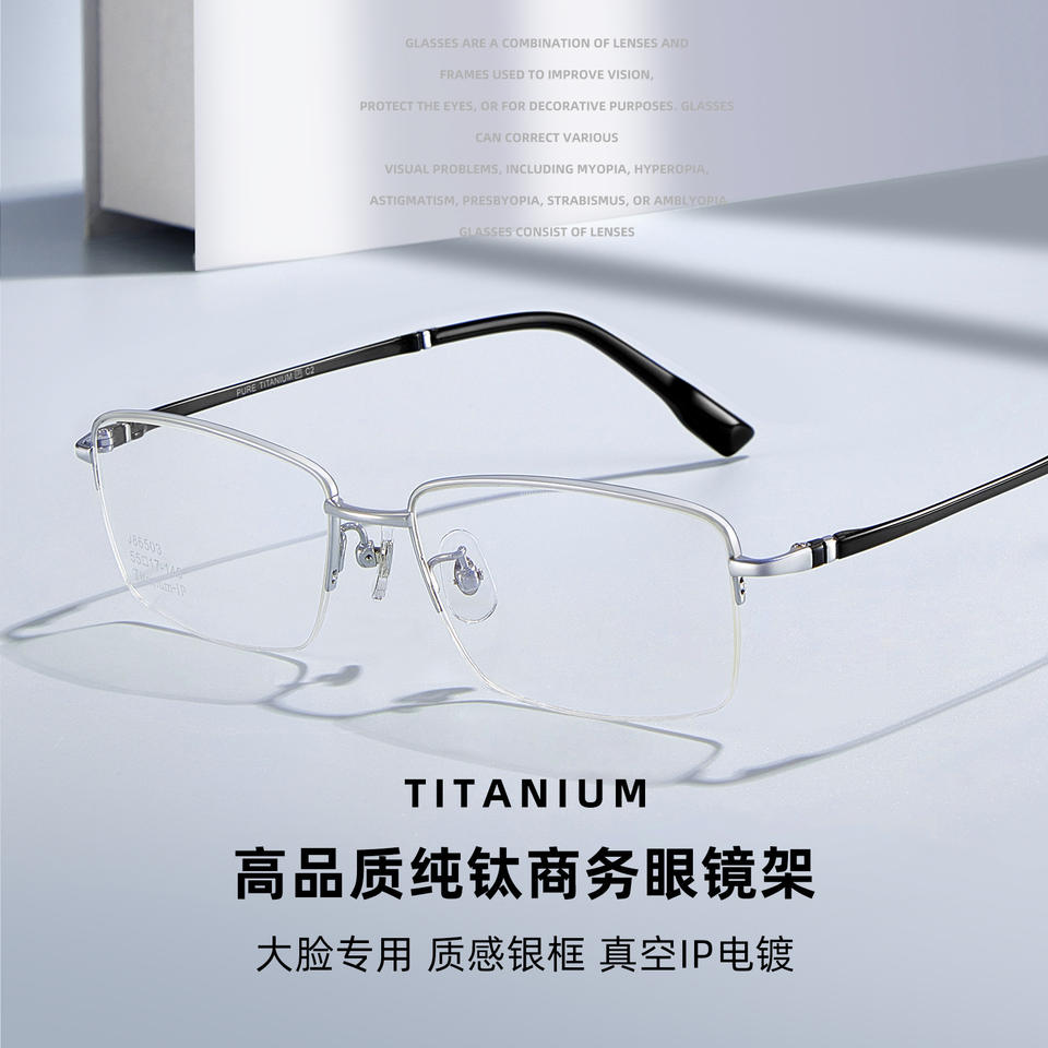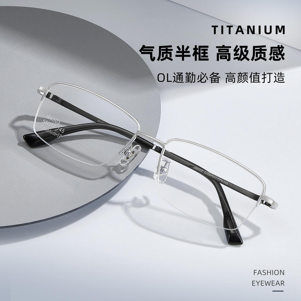 กรอบแว่นตาทรงสี่เหลี่ยมครึ่งกรอบไทเทเนียมแท้สำหรับผู้ชาย Danyang รุ่น J86503 เลนส์อะคริลิกน้ำหนักเบา