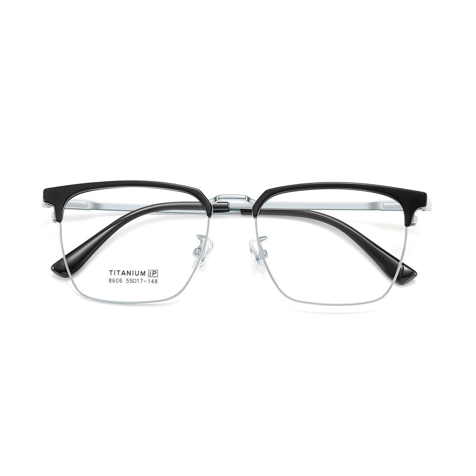 กรอบแว่นตาผู้ชายทรงสี่เหลี่ยม Danyang ขาแว่นทำจากเบต้าไทเทเนียม แผ่นรองจมูกซิลิโคนนุ่มกันลื่น เลนส์อะคริลิคแบบเต็มกรอบ