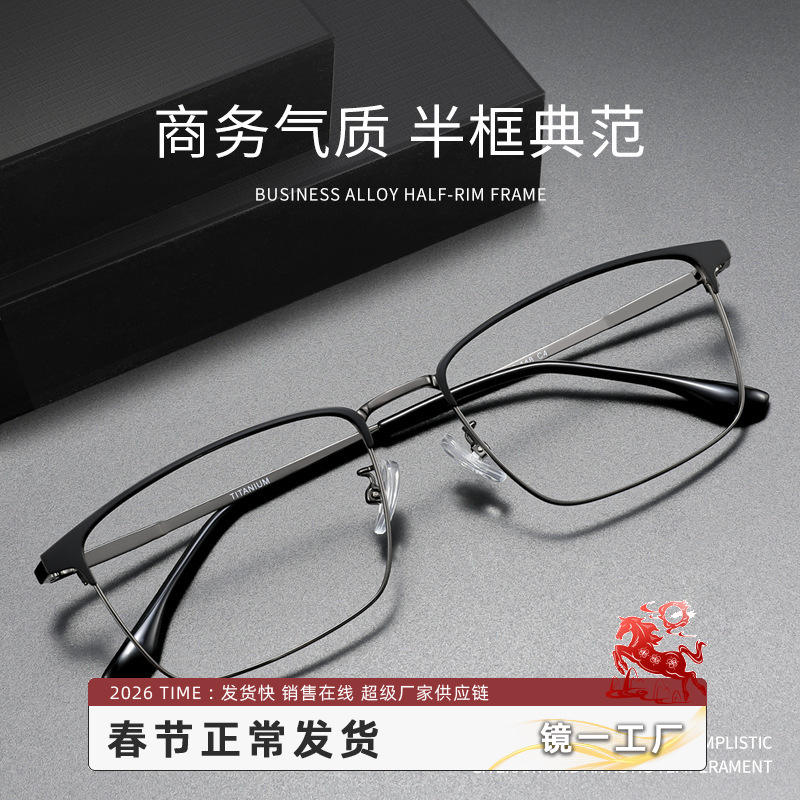 Danyang Men's Square Eyeglasses Frames 96058 Full-Frame Alloy Anti-Uv Plastic Lenses