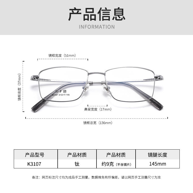กรอบแว่นตาไทเทเนียมสำหรับผู้ชาย Danyang รุ่น 3107 ทรงสี่เหลี่ยมเต็มกรอบ น้ำหนักเบา แว่นตาสำหรับธุรกิจ สำหรับสายตาสั้น