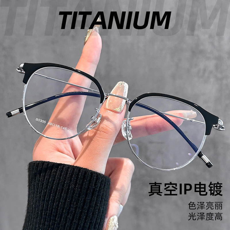 กรอบแว่นตา Danyang Oval รุ่น 50503 ไทเทเนียมแท้ ครึ่งกรอบ แว่นสายตาผู้ชาย ขาแว่นมาตรฐาน เลนส์พลาสติก