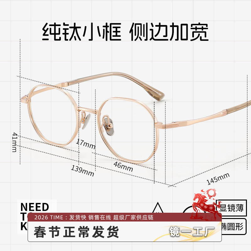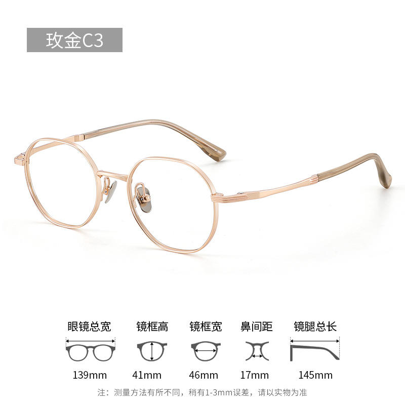 แว่นตาขอบทองรูปไข่ดันหยางสำหรับผู้หญิงกรอบไทเทเนียมบริสุทธิ์ 28023 แว่นตาสายตาสั้นแบบเบาพิเศษ
