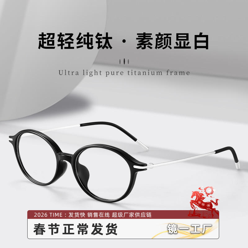 กรอบแว่นตาไทเทเนียมบริสุทธิ์รูปไข่ดันหยางสำหรับผู้หญิง 86145 ขนาดกลาง น้ำหนักเบา สไตล์ระดับไฮเอนด์
