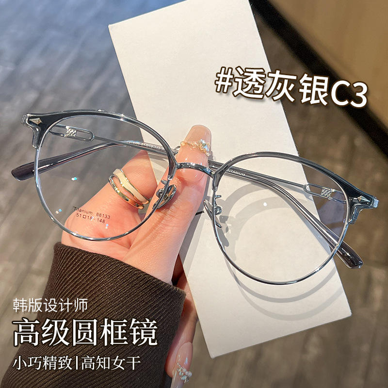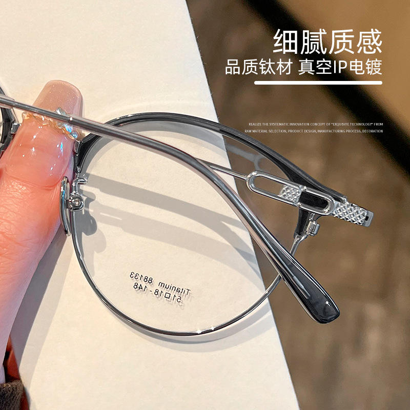 ตันหยางแว่นตาครึ่งกรอบไทเทเนียมบริสุทธิ์สำหรับผู้หญิงกรอบสายตาสั้นน้ำหนักเบา 88133