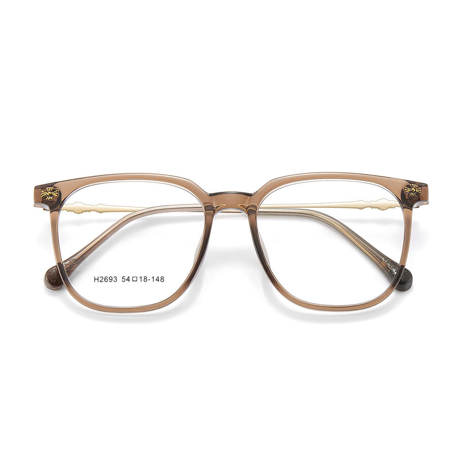 Danyang Rectangle Tr90 Eyeglass Frames H2693 Full Frame Resin Lens Durable Unisex Transparent Brown Retro Design