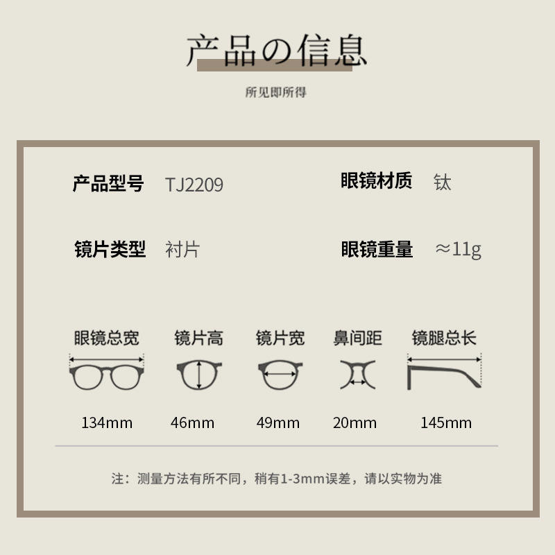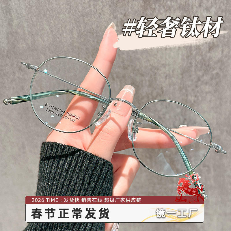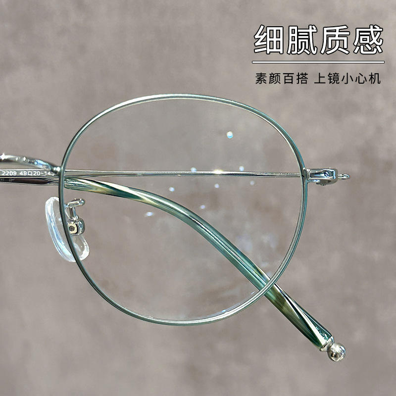 กรอบแว่นตาไทเทเนียมทรงกลมดันยาง 2209 สำหรับผู้หญิงหน้าเล็กแฟชั่นกรอบแคบเลนส์พลาสติก