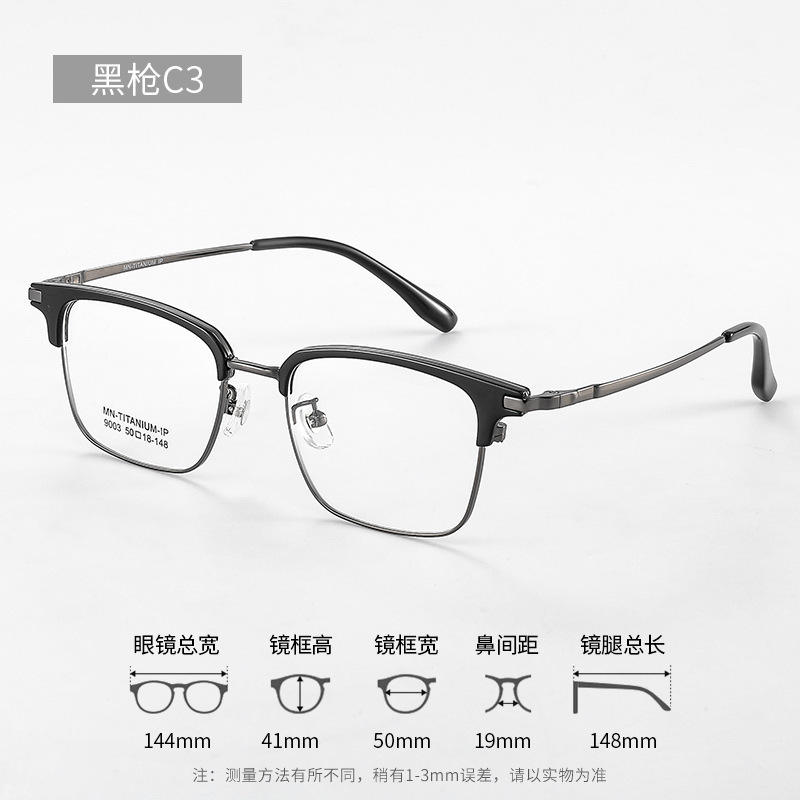 แว่นตากรอบสี่เหลี่ยมดันหยาง 9003 กรอบโลหะผสมน้ำหนักเบาสำหรับผู้ชายแก้ไขสายตาสั้นด้วยเลนส์พีซี