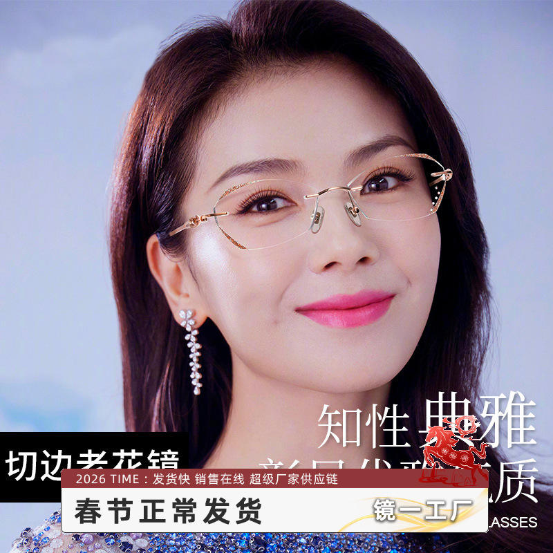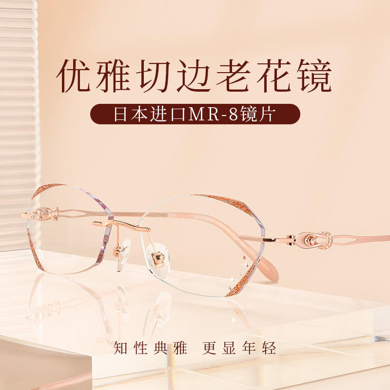 แว่นตาอ่านหนังสือสำหรับผู้หญิง Danyang กรอบโลหะ เลนส์ PC ป้องกันแสงสีฟ้า ดีไซน์รูปพระจันทร์ J 7122 ประดับเพชรอย่างหรูหรา