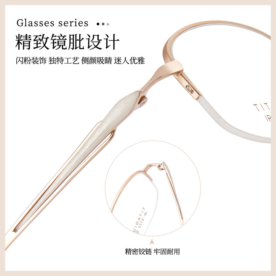 แว่นตาครึ่งกรอบไทเทเนียมทรงวงรีสำหรับผู้หญิงดันหยาง 6172 เลนส์อะคริลิกกันลื่น