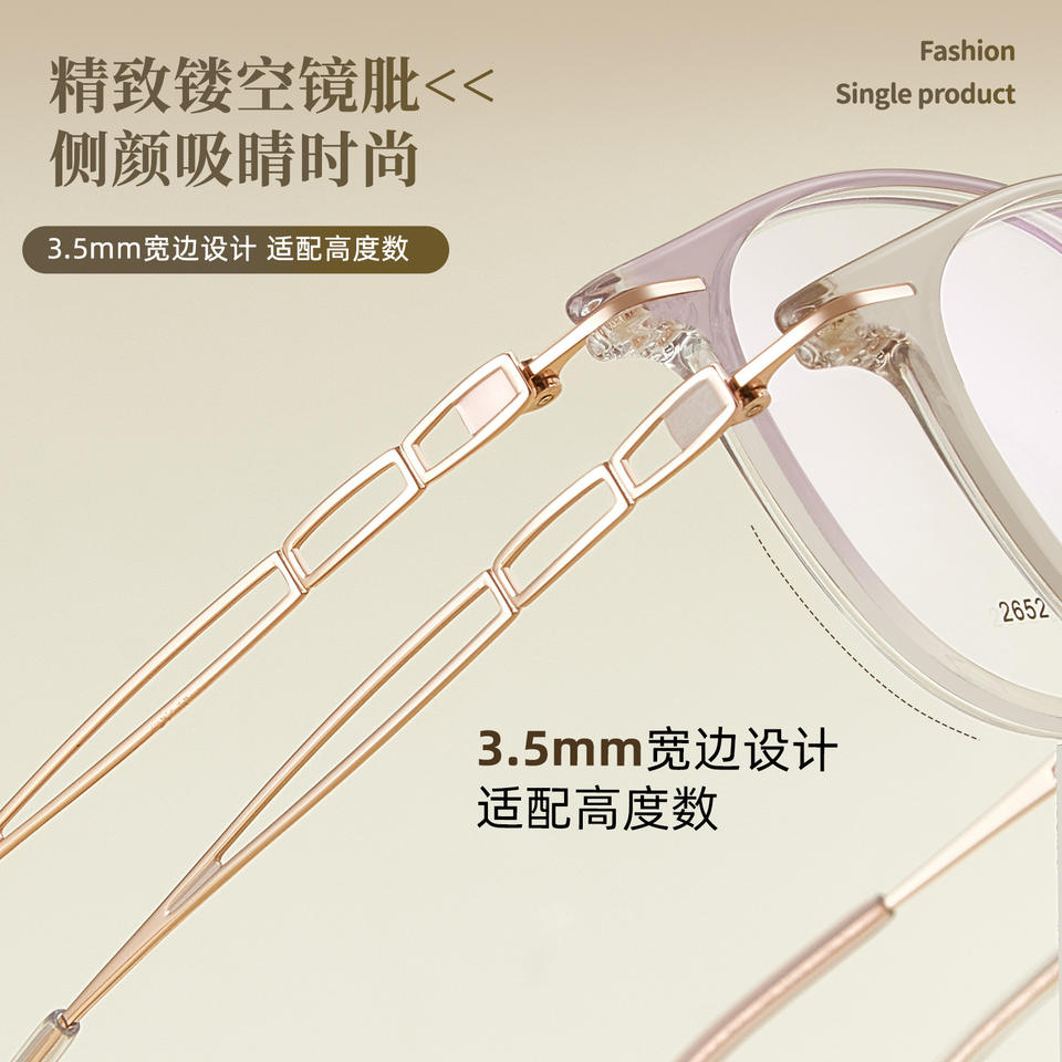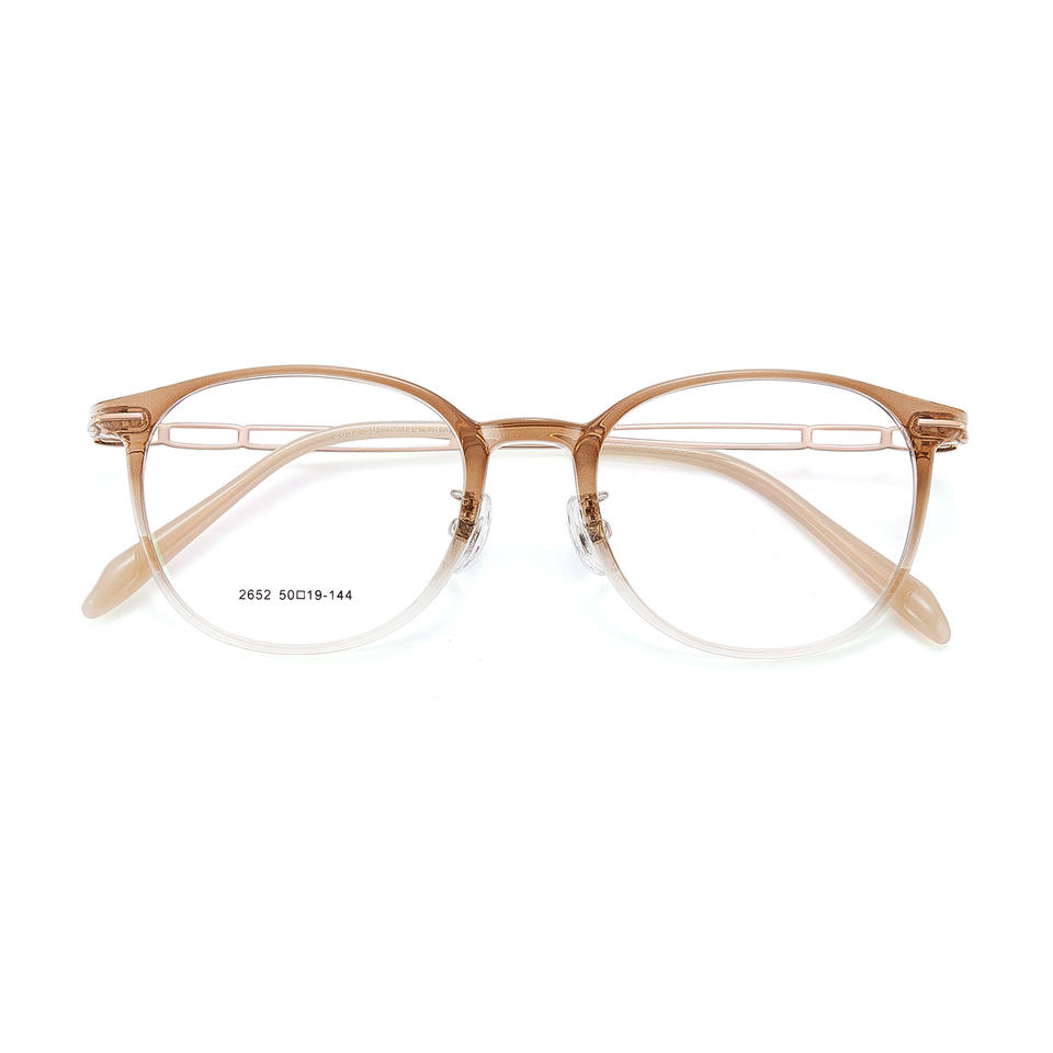 กรอบแว่นตาโลหะผสม Tr90 รูปวงรีสำหรับผู้หญิง Danyang รุ่น 2652 น้ำหนักเบา เลนส์เรซิ่นแบบเต็มกรอบ ดีไซน์ทรงกลม