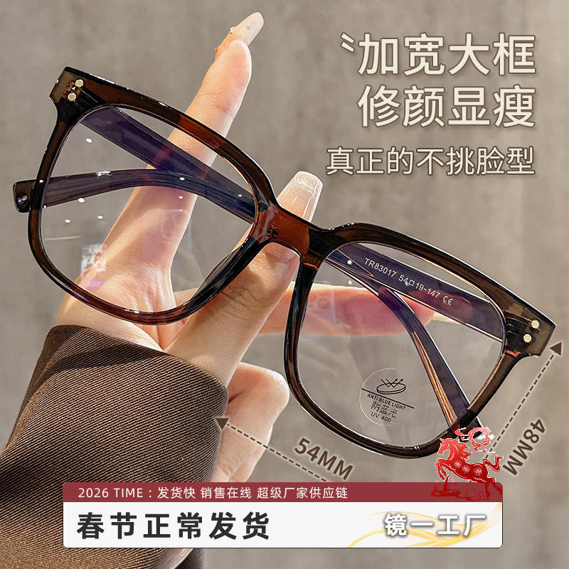 กรอบแว่นตาสี่เหลี่ยมผู้หญิงดันหยาง 83017 เลนส์พลาสติกป้องกันแสงสีฟ้าแบบเต็มกรอบสำหรับใบหน้าขนาดใหญ่