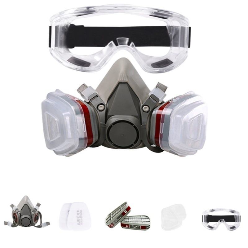 หน้ากากป้องกันแก๊สพิษ Daqin รุ่น 2025625-15 พร้อมแว่นตาป้องกันแบบยาง พร้อมตลับกรองฝุ่น ป้องกันระบบทางเดินหายใจ สำหรับงานอุตสาหกรรม แบบครึ่งหน้า