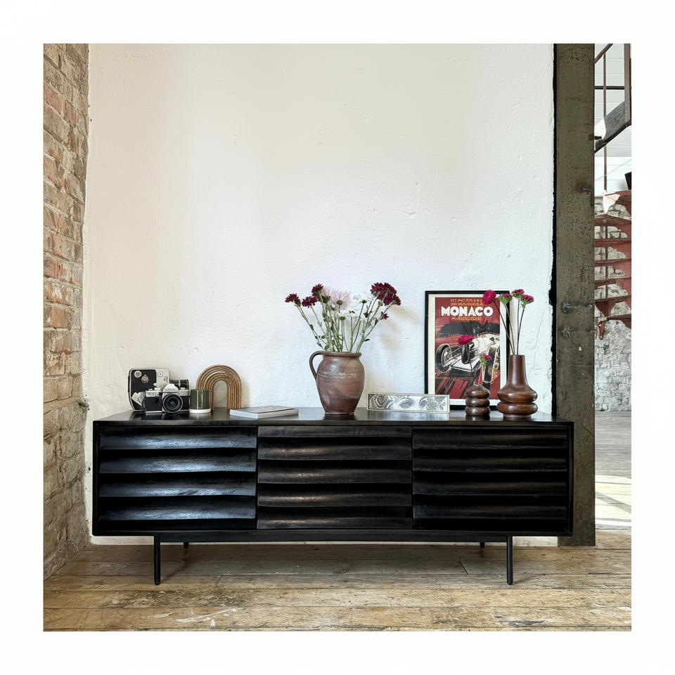 Daria ขาตั้งทีวีไม้มะม่วงแข็งสีดำดีไซน์ทันสมัยสำหรับห้องนั่งเล่นห้องนอนพื้นที่รับประทานอาหารโรงแรมอพาร์ทเมนท์
