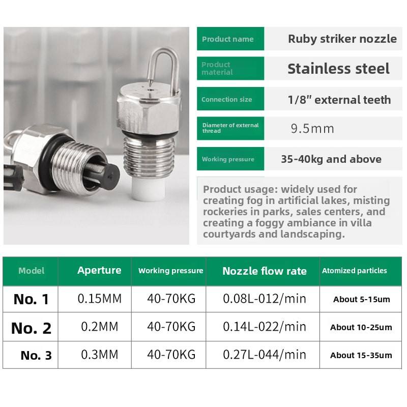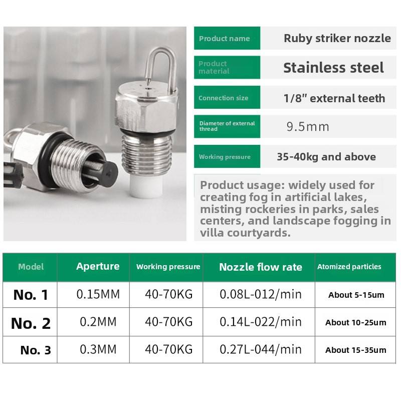 เข็มยิงอัญมณีสีแดงจากดาริงฟิช304สเตนเลสสตีลแรงดันสูงหัวฉีดหมอกลดความชื้นฝุ่น