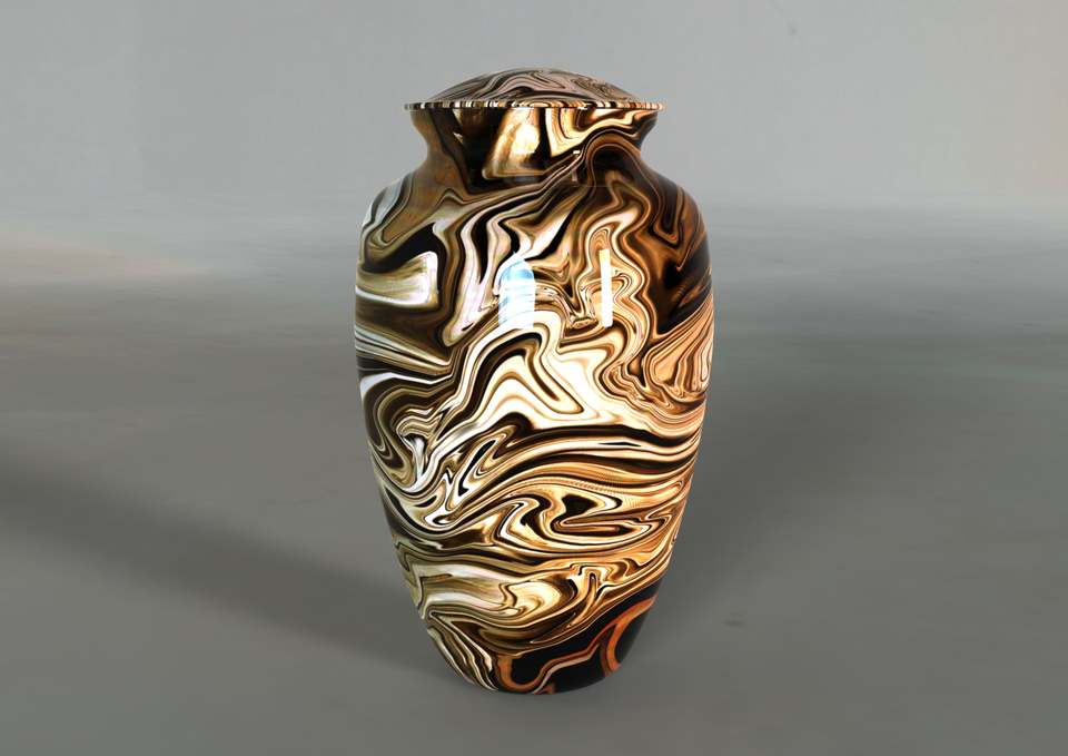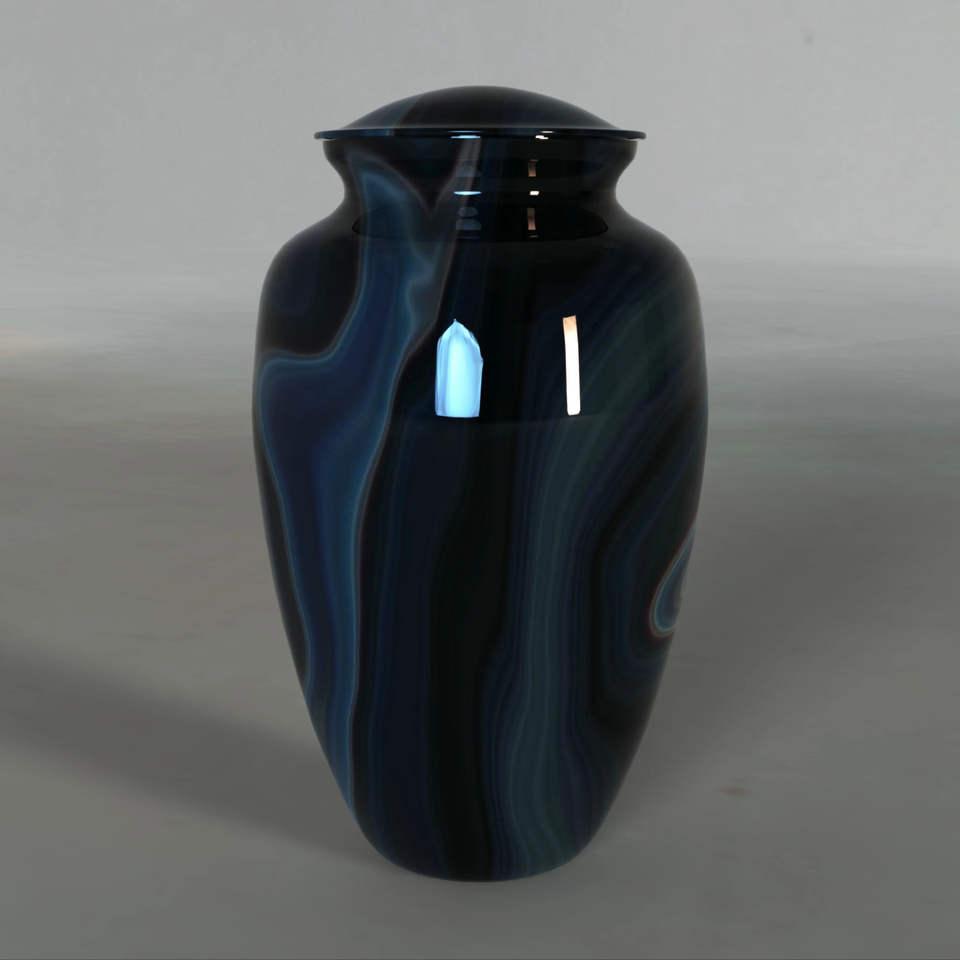 โกศบรรจุอัฐิโลหะสไตล์แก้วสีน้ำเงินเข้ม ลวดลายคลื่นไหล สำหรับเก็บอัฐิ