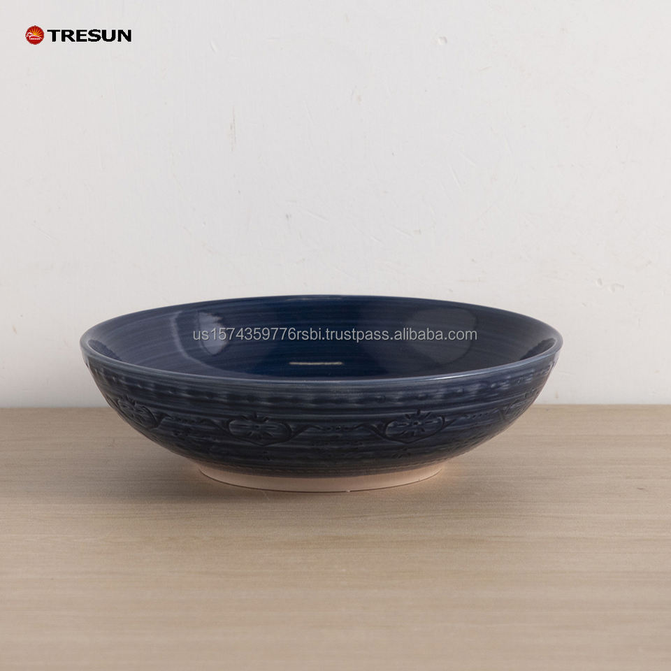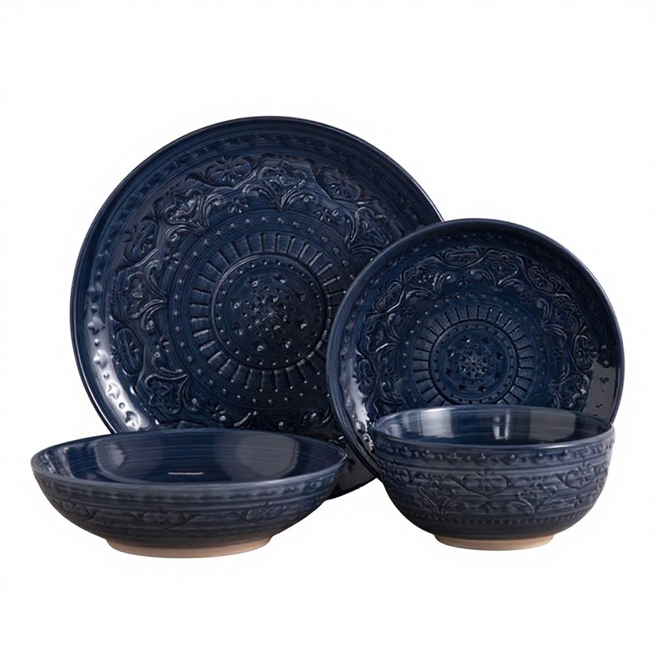 ชุดอาหารค่ำเซรามิกสโตนแวร์ 16 ชิ้น สไตล์นอร์ดิก หรูหรา ทันสมัย ลวดลายเพ้นท์มือ สีน้ำเงินเข้ม แบบเคลือบแตก ผลิตตามสั่ง (OEM)