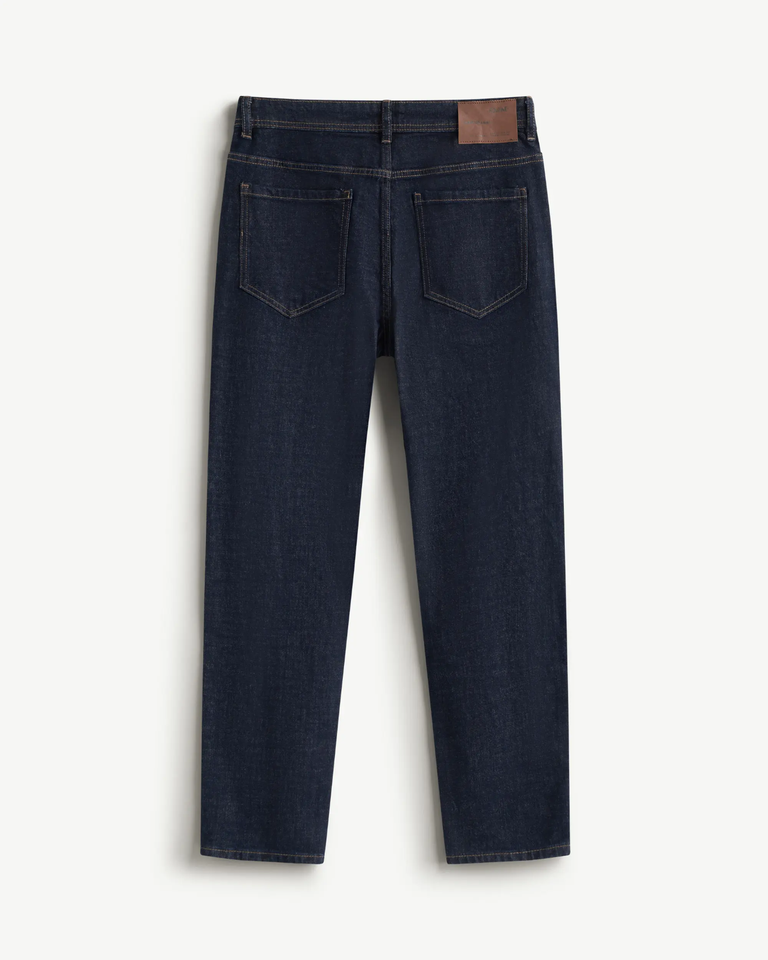 กางเกงยีนส์สีน้ำเงินเข้มสำหรับผู้ชาย ผ้าฝ้ายคุณภาพดี ทรงปกติ สวมใส่สบาย นุ่มลื่น