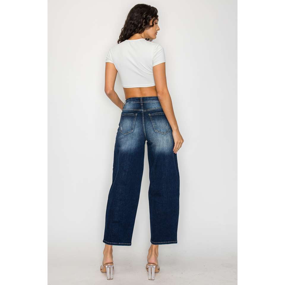 กางเกงยีนส์สีน้ำเงินเข้มเอวสูงทรงขากว้าง แห้งเร็ว น้ำหนักเบา สำหรับฤดูร้อน ผ้าทอเนื้อแน่น เหมาะสำหรับการเดินทาง กิจกรรมกลางแจ้ง และสวมใส่ลำลอง