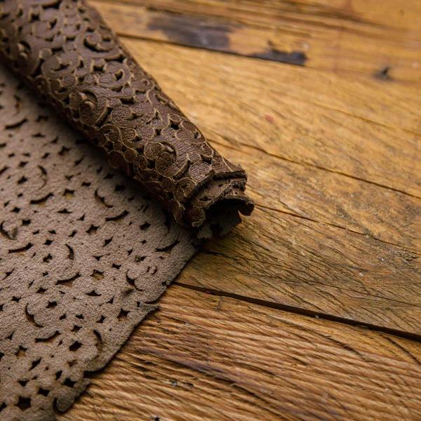 Dark Blue Laser Cut Leather with Plumeria Flower Pattern Available in 1 to 22 Sqft Order Leather Products.