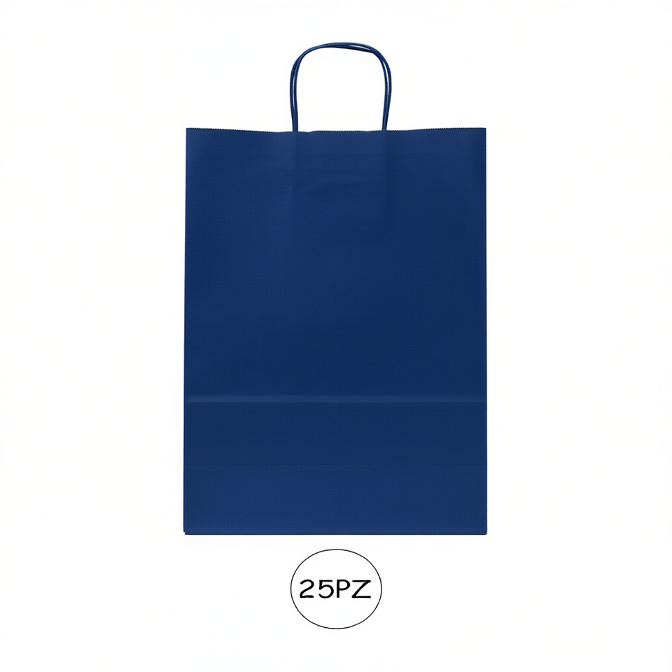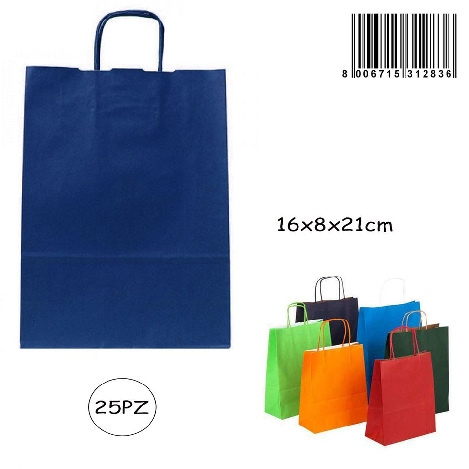 ถุงกระดาษสีน้ำเงินเข้ม 16x8x21 ซม. หูหิ้วแบบบิด ปิดผนึกสำหรับบรรจุของขวัญ 25 ชิ้น