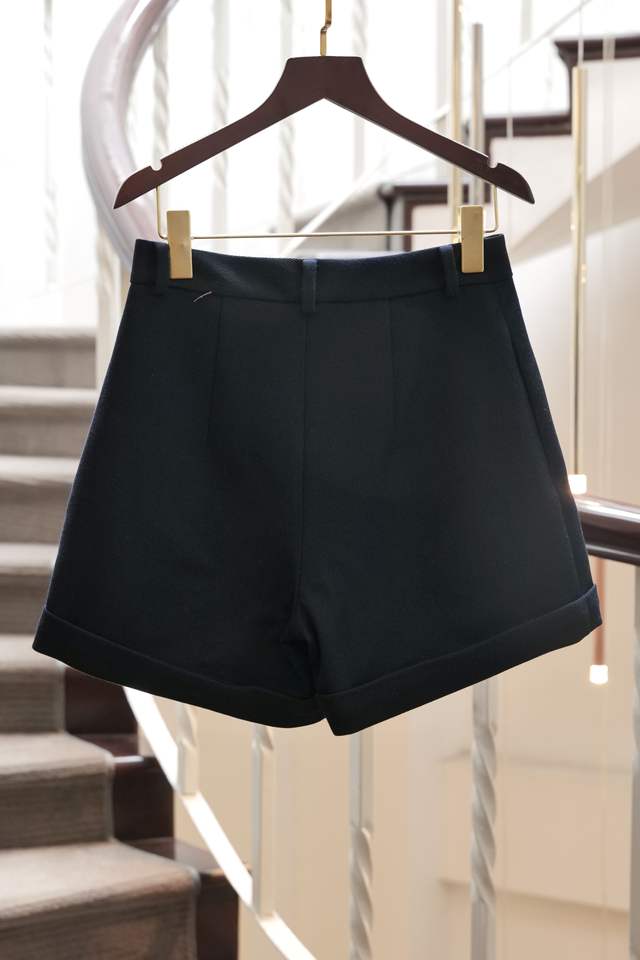 กางเกงขาสั้นสีน้ำเงินเข้มราคาถูกสำหรับผู้หญิงป้ายผ้าคุณภาพสูงหรูหราทำจากสินค้าเวียดนาม