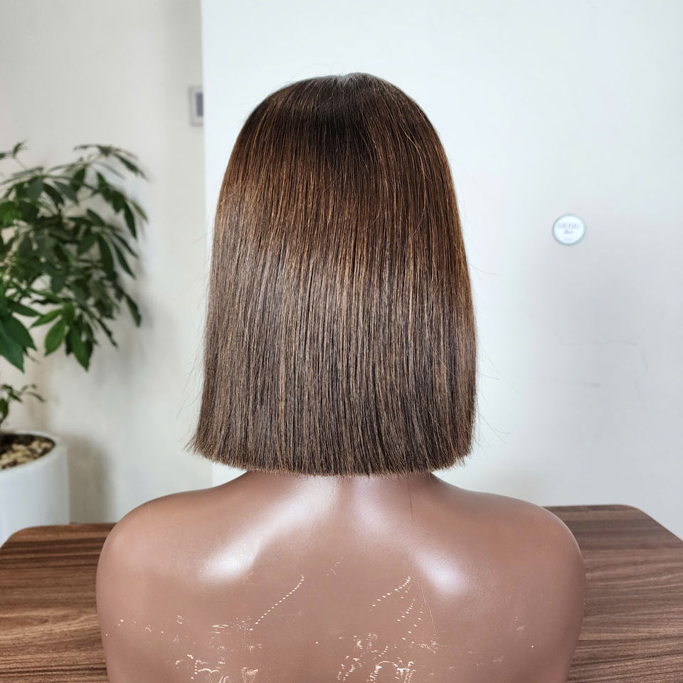 วิกผมบ๊อบสีน้ำตาลเข้มสำหรับผู้หญิงผิวดำวิกผมแท้แบบมีลูกไม้ด้านหน้า HD 5*5สำหรับผู้หญิงผิวดำที่มีความหนาแน่น180%