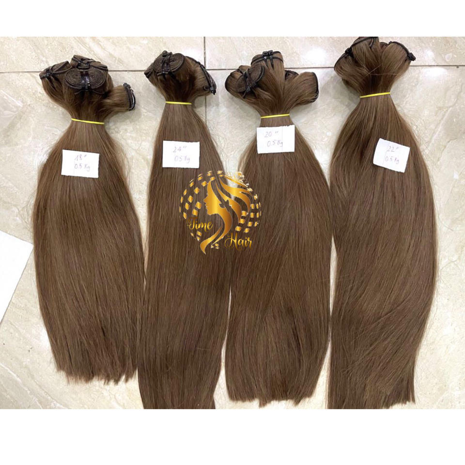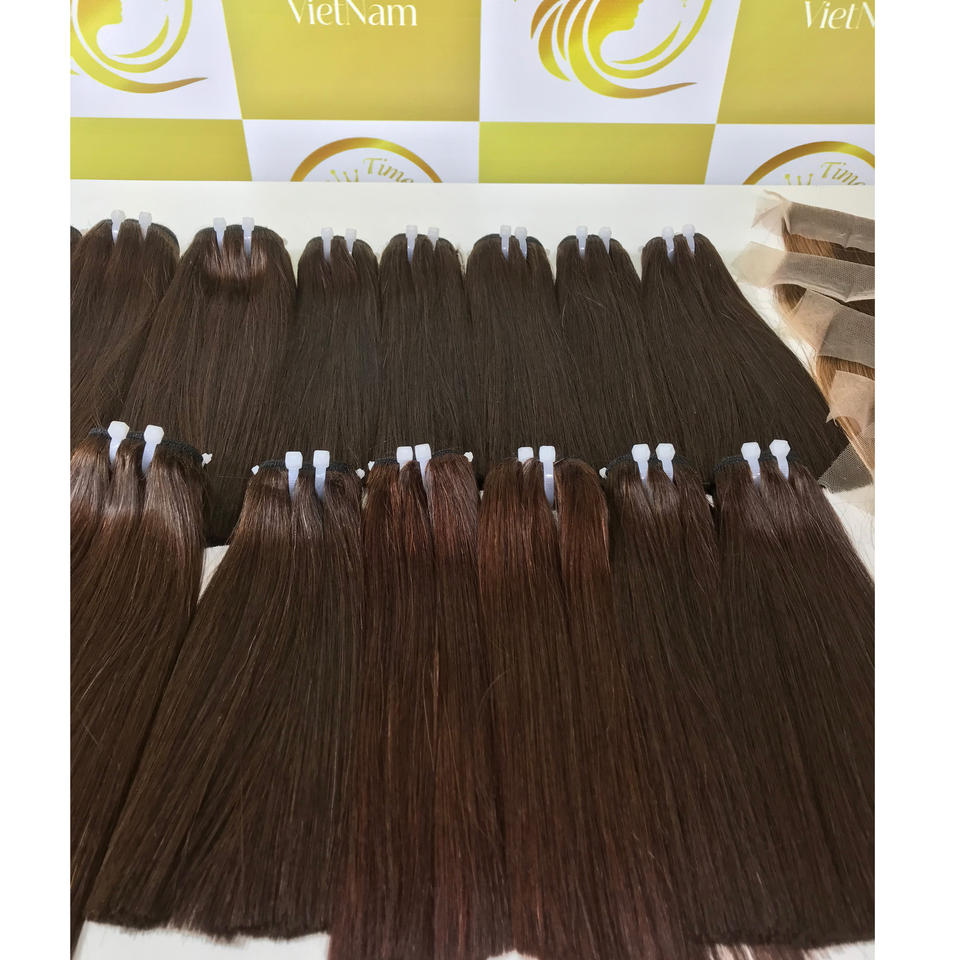 ช่อผมสุดหรูสีน้ำตาลเข้มมัดผมคน100% ผมตรงสำหรับต่อผมสีขาว