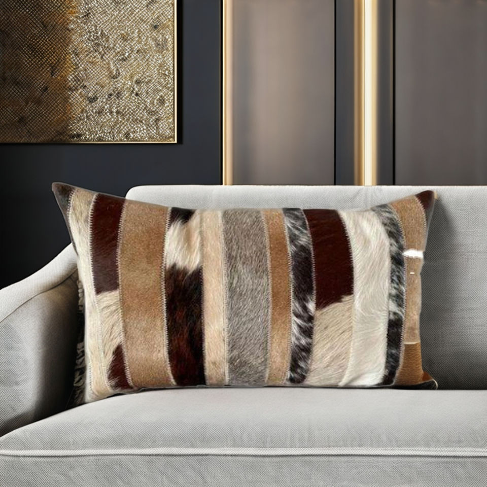 ปลอกหมอนสี่เหลี่ยมหนังวัวสีน้ำตาลเข้มดีไซน์แบบเย็บปะติดปะต่อกันป้องกันแบคทีเรียไรฝุ่นกันไรสไตล์วินเทจ