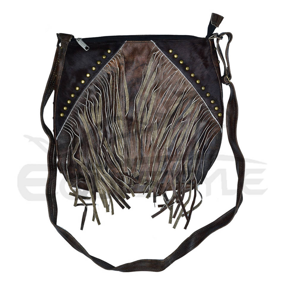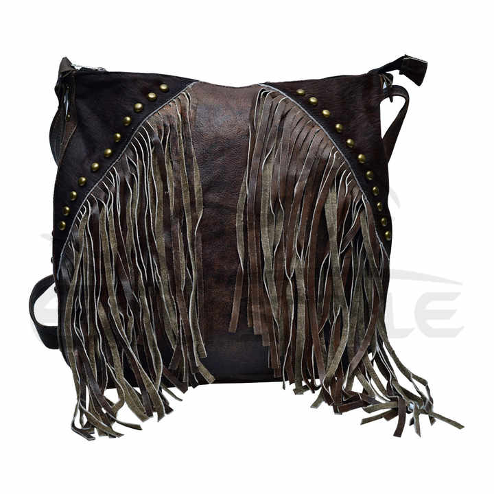 หนังสีน้ําตาลเข้ม Fringe กระเป๋าแฟชั่นตะวันตก Cowhide กระเป๋าสุภาพสตรีไหล่ Fringe กระเป๋าออกแบบที่กําหนดเองตะวันตกพู่ Cowhide กระเป๋า