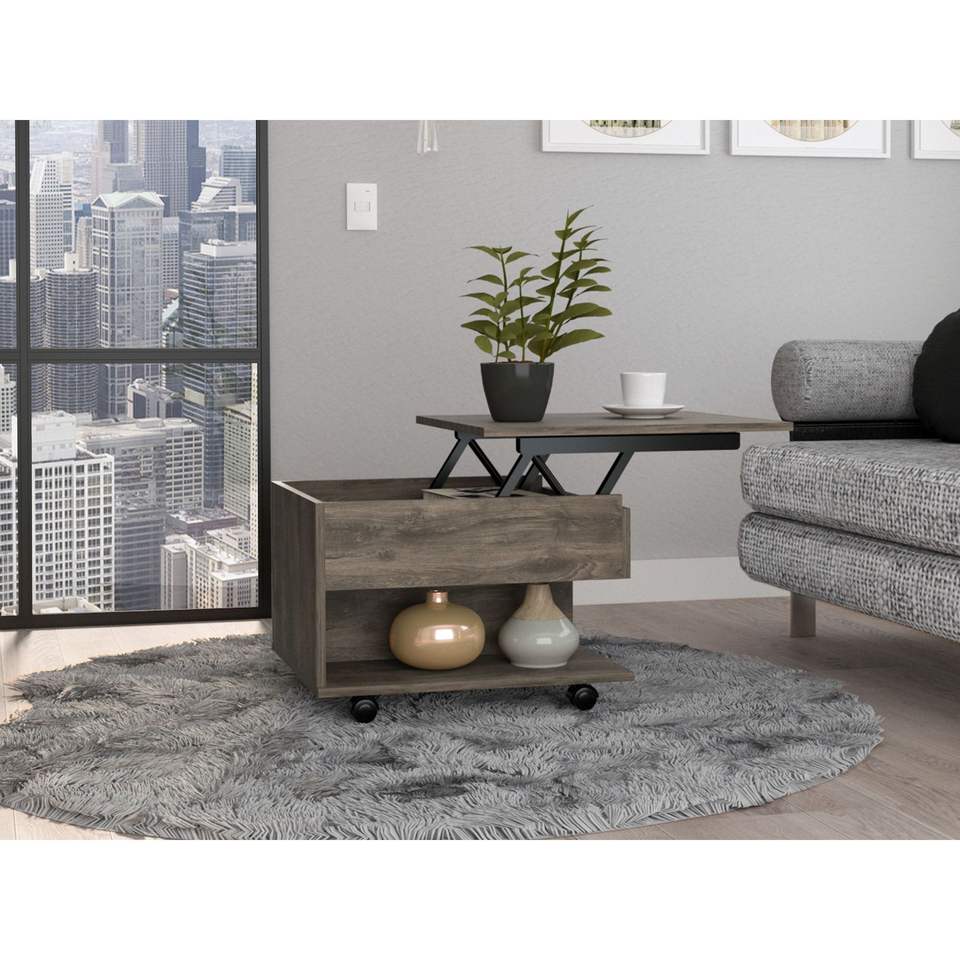 โต๊ะกาแฟยกสูงสีน้ำตาลเข้มพร้อมลิ้นชัก 1 ช่องและชั้นวาง 1 ชั้น