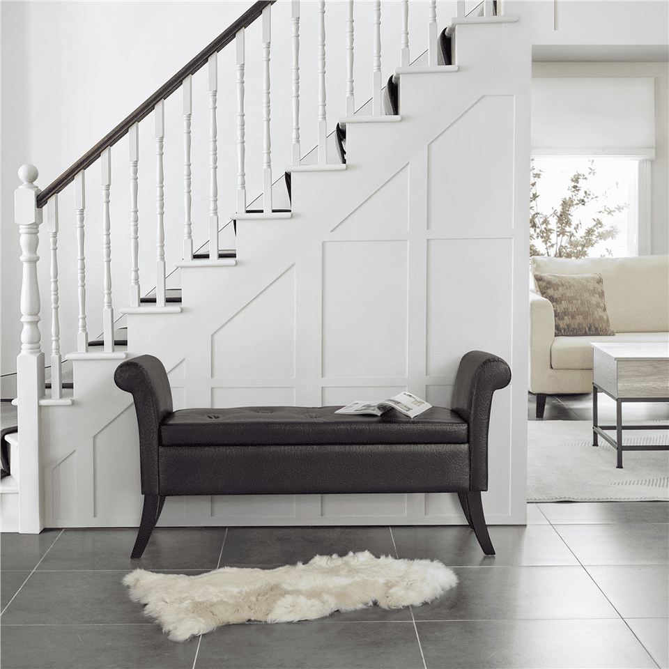 ที่เก็บของสีน้ำตาลเข้มและม้านั่งตกแต่งสำหรับเฟอร์นิเจอร์ห้องนั่งเล่น