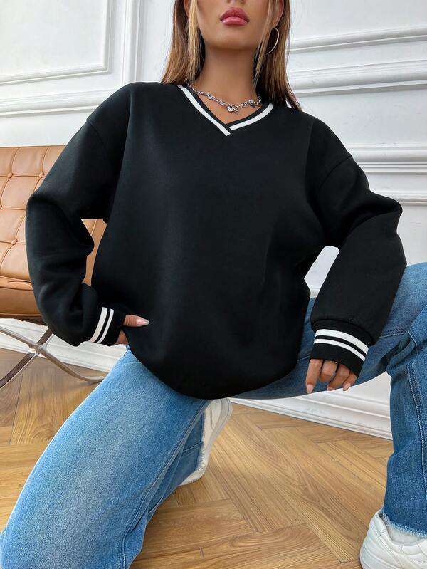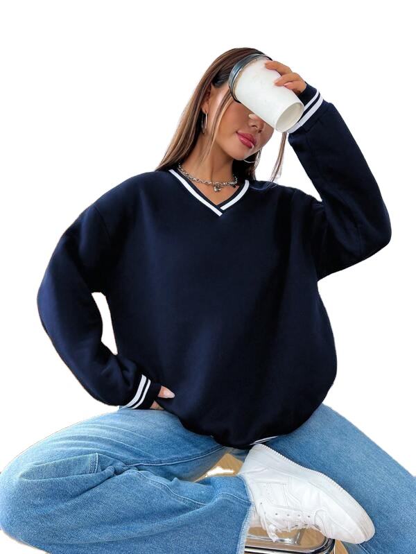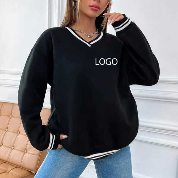 เสื้อมีฮู้ดคอวีสำหรับผู้หญิงเสื้อสเวตเตอร์ผ้าฝ้ายแขนยาวทรงหลวมใส่สบายออกแบบได้ตามต้องการสำหรับฤดูหนาว