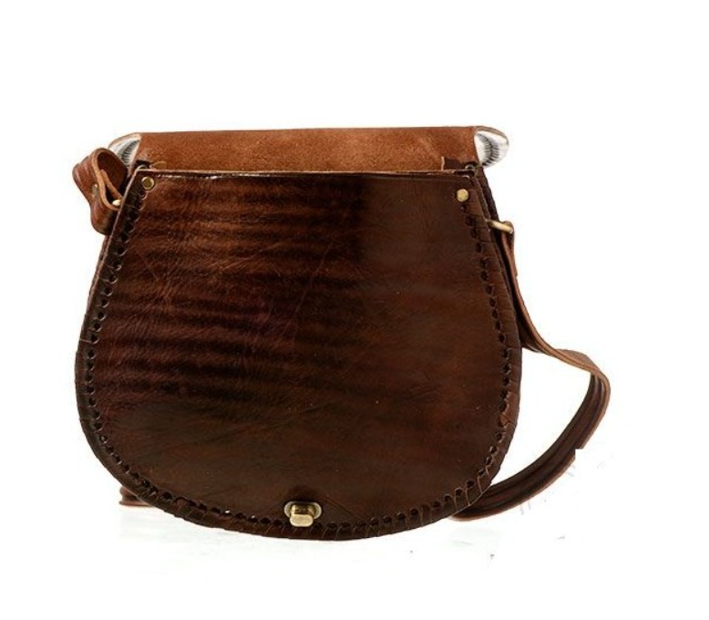โหมด:กระเป๋าโมร็อกโกแกะสลักสีน้ำตาลเข้มพร้อมล็อคสีทอง