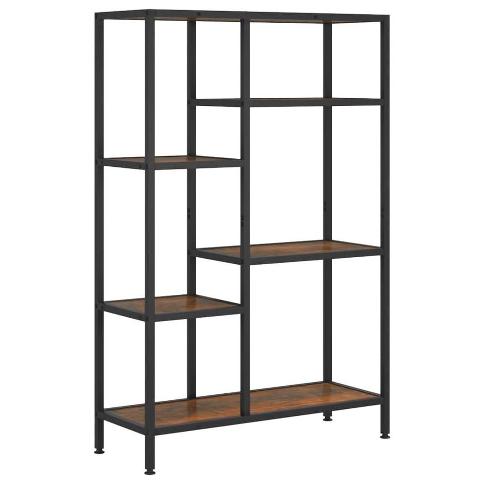 ชั้นวางหนังสือเหล็กไม้สีน้ำตาลเข้มและสีดำ ชั้นวางหนังสือที่หรูหราและทนทาน