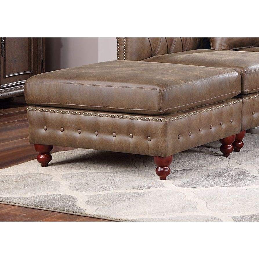Dark Coffee Breathable Leatherette 3pc Sectional Set 2x Reversible Loveseat/Chaise 1x Ottoman Tufted Couch Pillows Living Room
