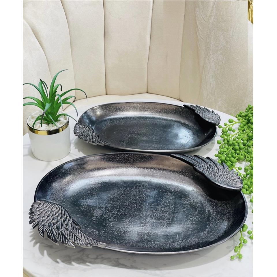 ชามใส่ผลไม้ทรงรีทำจากอลูมิเนียมสำเร็จรูปสีเข้มหรูหราสำหรับตกแต่งบ้านและโรงแรมชามโลหะ