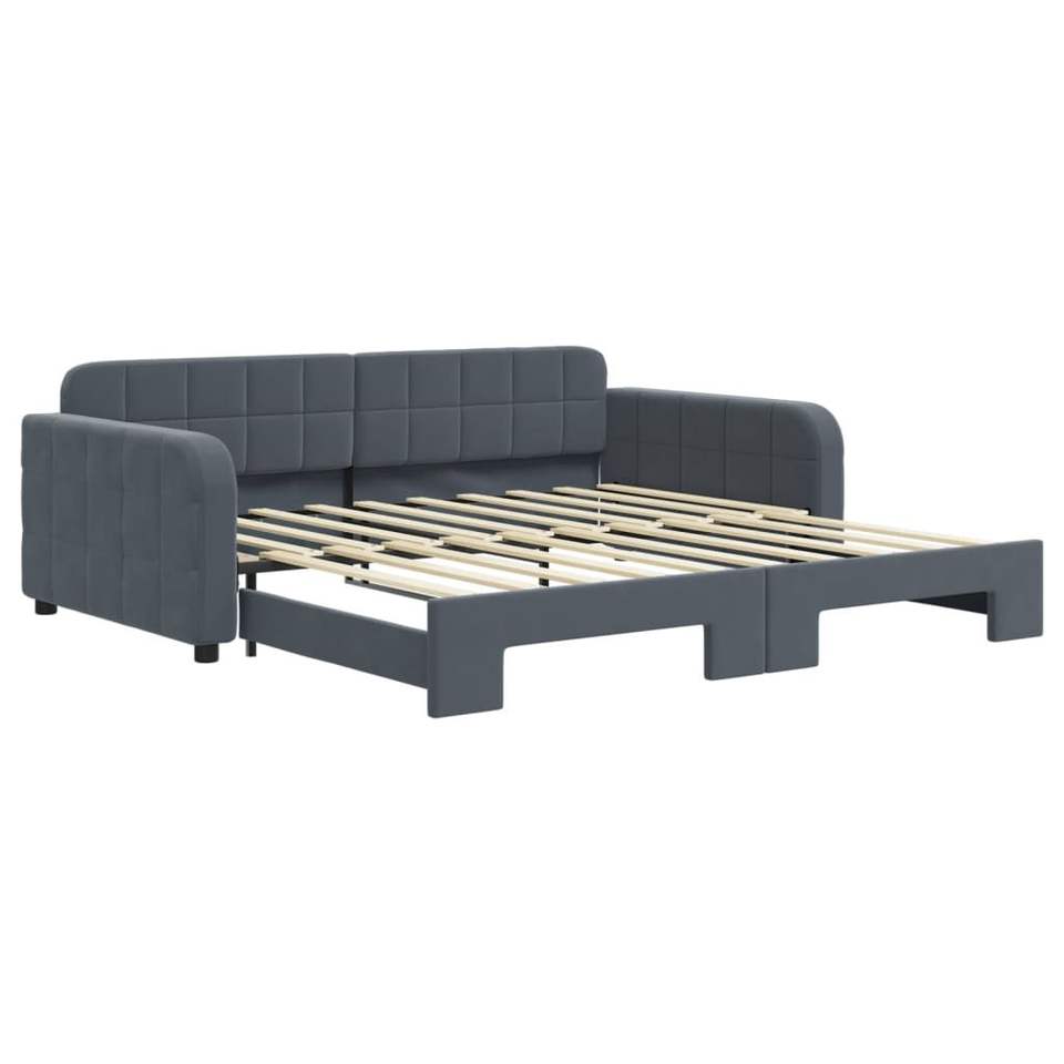 เตียงนอนสีเทาเข้มขนาด 39.4"x74.8" พร้อมเตียงโซฟาแบบมีล้อเลื่อน ไม่มีที่นอน
