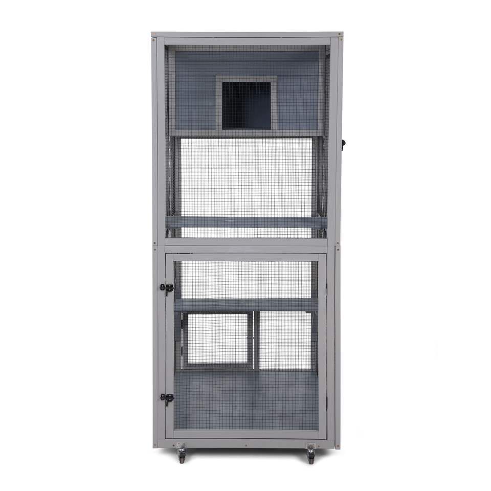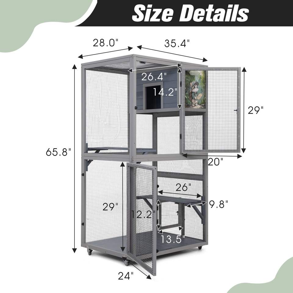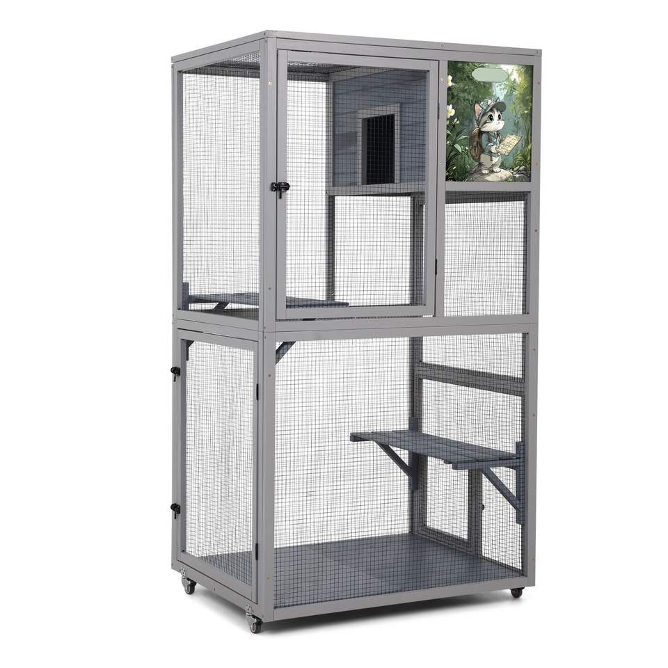Dark Gray 66'' Cat Condos on Wheels Outdoor Patio Enclosure with Platforms Pet House Furniture Cat House Catio