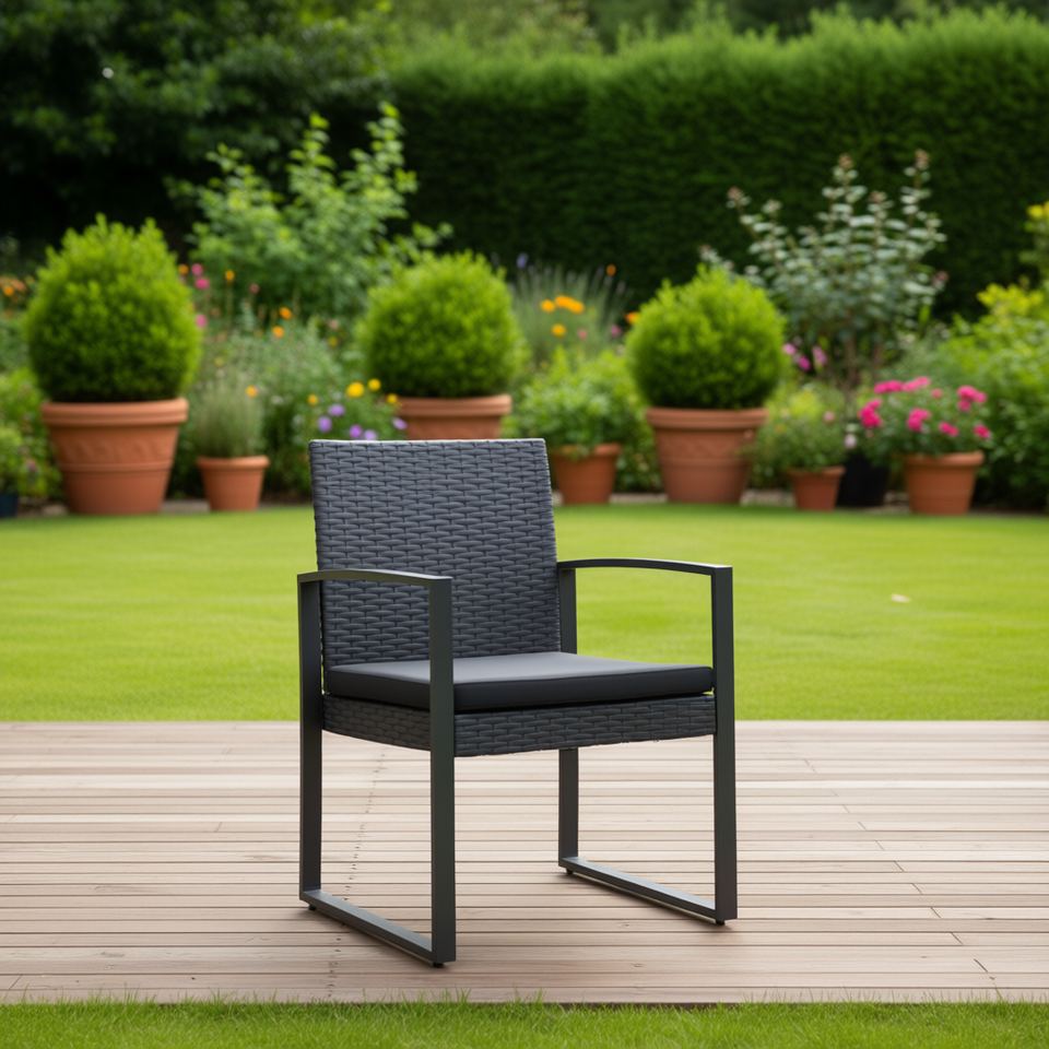 เก้าอี้สวนหวายสีเทาเข้ม โครงอะลูมิเนียม เฟอร์นิเจอร์กลางแจ้งทันสมัย เก้าอี้รับประทานอาหารสำหรับลานบ้าน ทนทาน