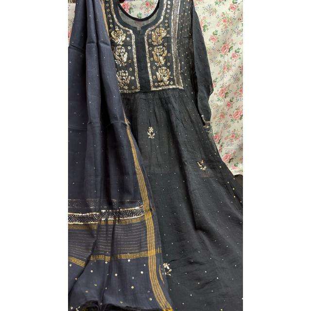 Product Name:Soft Pure Mulchanderi Silk Tunic Style Kurta n Dupatta