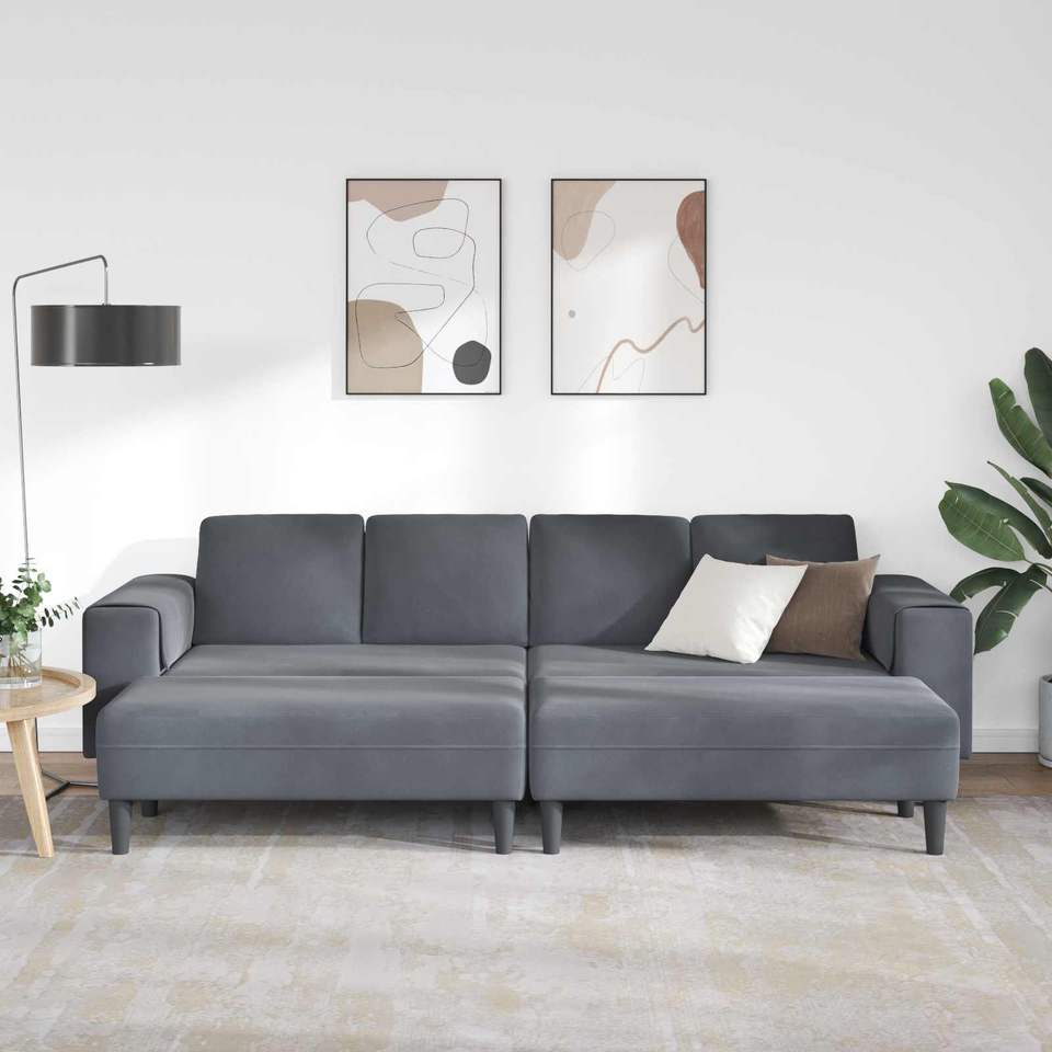 ชุดโซฟากำมะหยี่สีเทาเข้มสำหรับห้องนั่งเล่น