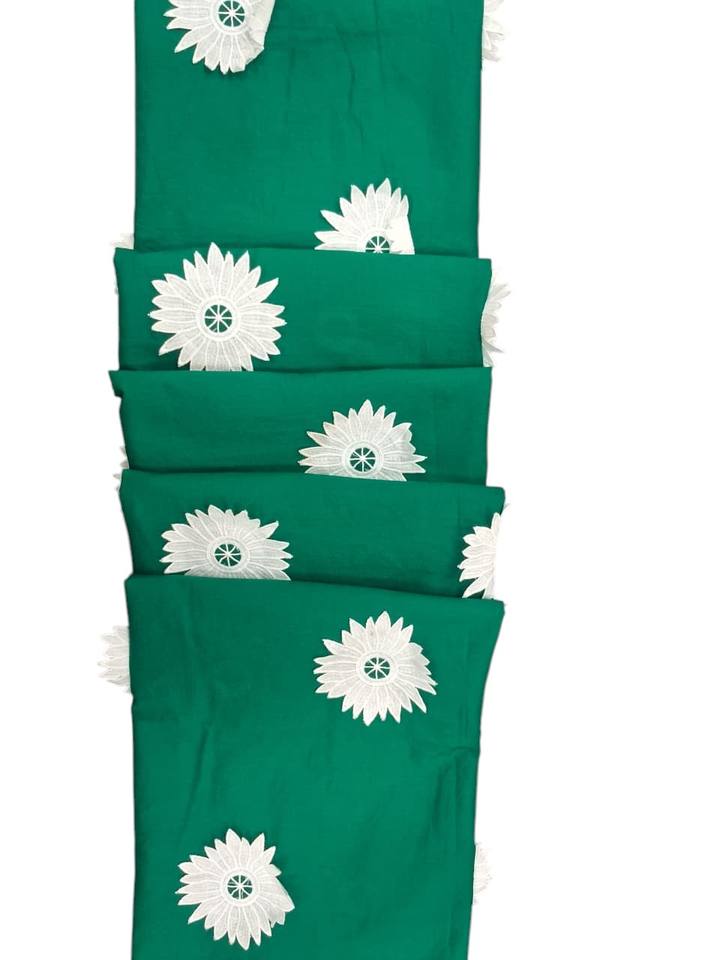 Dark Green 100% Cotton 3D Embroidered Floral Fabric