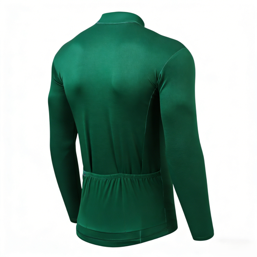 เสื้อปั่นจักรยานแขนยาวสีเขียวเข้ม ยืดหยุ่นสูง ระบายอากาศได้ดี ทนทาน เหมาะสำหรับการปั่นจักรยานในเมืองช่วงเช้าและการปั่นระยะทางสั้น