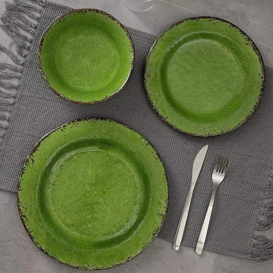 Dark Green Household Melamine Plate Porcelain Bowl Tableware Set Durable New Year Gift Customizable Ice Crack Hotels Design