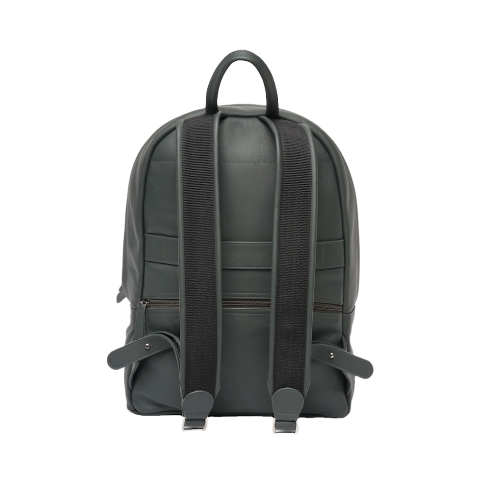 กระเป๋าเป้สะพายหลังหนังสีเขียวเข้มทำจากหนังพรีเมี่ยมพร้อมกระเป๋าคอมพิวเตอร์พร้อมสายรัดกระเป๋าซิปสำหรับกระเป๋า