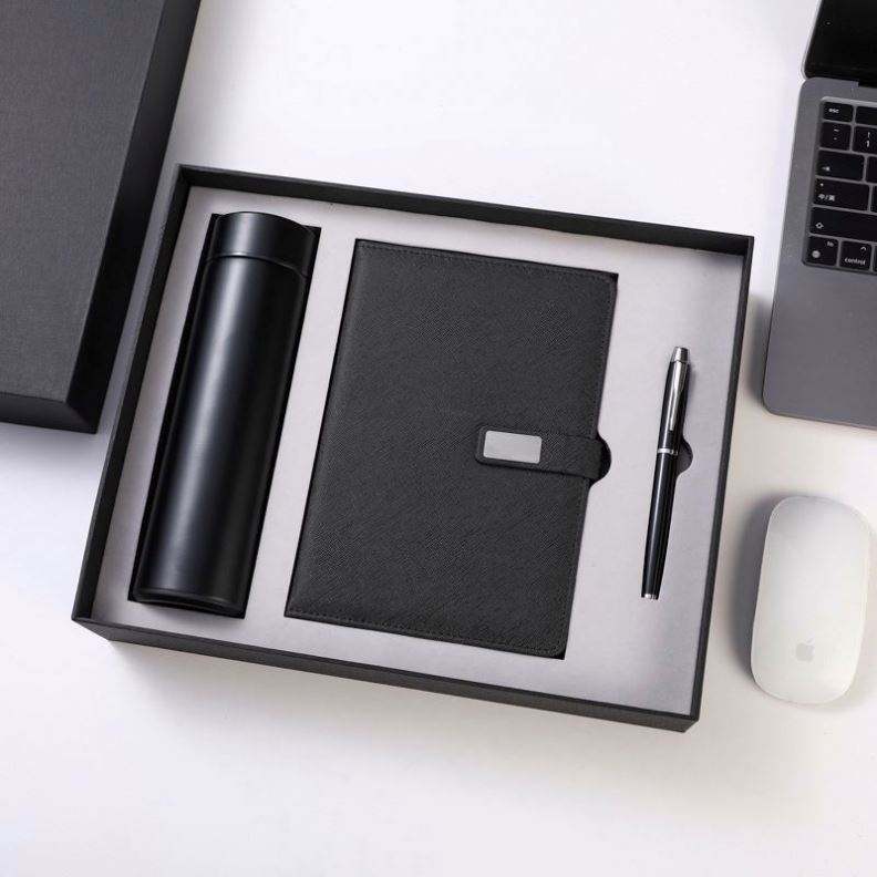 กล่องของขวัญธุรกิจสีเขียวเข้มทันสมัยเรียบง่าย ชุดกระติกน้ำเก็บอุณหภูมิพร้อมจอแสดงผลอัจฉริยะ สมุดโน้ต โลโก้ปรับแต่งได้ รุ่นจีน 078